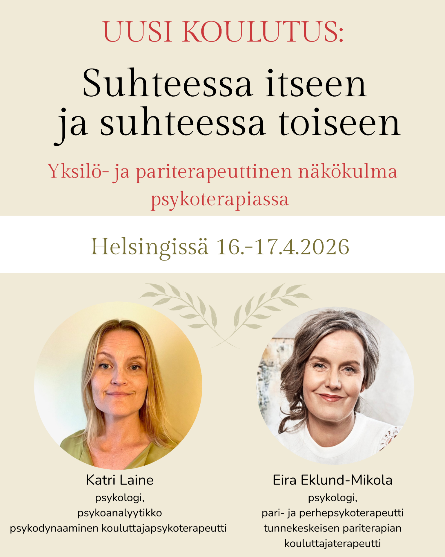 Yksilö- ja pariterapeuttisen näkökulman koulutus psykoterapiassa tulossa huhtikuussa. Katso lisätiedot ja ilmoittaudu mukaan täältä!